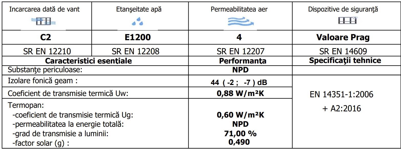 | Configuratie geam termoizolant | 44,2 lowE - 6 Clar - 44,2 lowE + Ar |