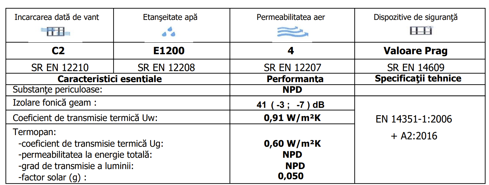 · Coeficient de transmisie termica Uw=0.91 W/m2K