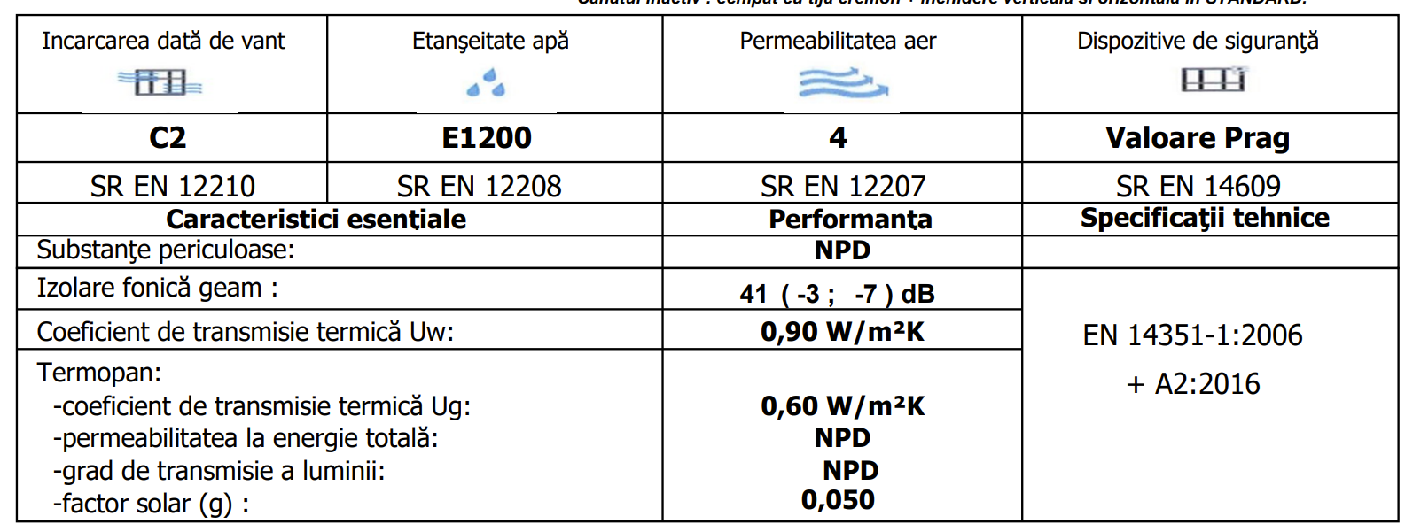 · Coeficient de transmisie termica Uw= 0.90 W/m2K