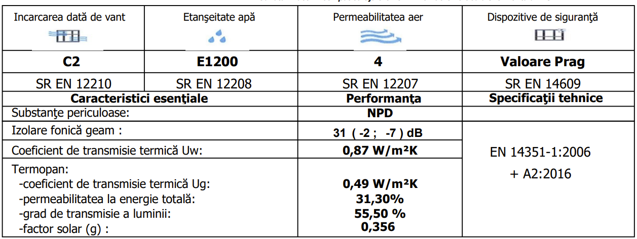 · Coeficient de transmisie termica Uw= 0.87 W/m2K
