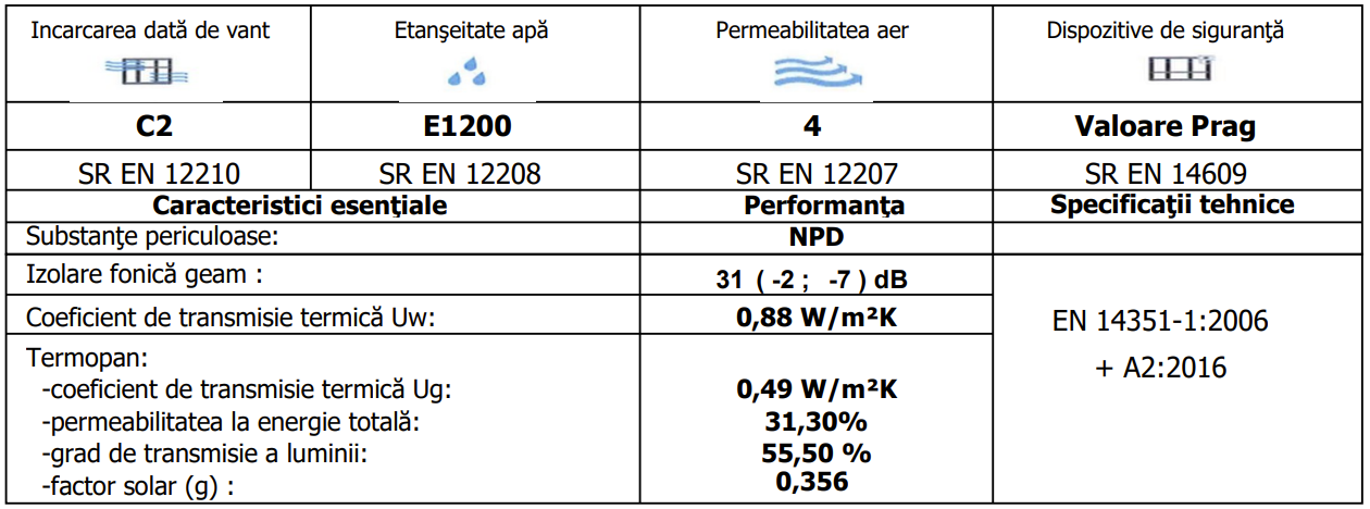 · Coeficient de transmisie termica Uw= 0.88 W/m2K